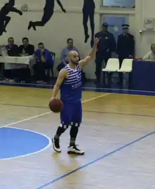 In October 2014, DiNunno signed for British Basketball League team Cheshire Phoenix.[33] He had 36 points, 4 assists and 4 steals against the Manchester Giants, to achieve season-highs in scoring and steals.[34][35] He dished out a season-high 10 assists to help his team get past the Glasgow Rocks.[35][36] He was waived by the club in April due to a back injury that kept him out for almost a month.[37][38] His team, that started the season 1–4, went 17–3 when DiNunno played.[38] He played in 21 games in the BBL, averaging 15.9 points, 2.1 rebounds, 4.5 assists and 1.9 steals per game.[39] In August 2015 DiNunno signed an annual contract with Greek A2 team Iraklis Thessaloniki.[40][41] He scored a game-high 26 points in his debut for Iraklis, helping his team get a narrow 82–81 away win against Ethnikos Piraeus for the first round of the Greek Cup.[42] He scored a season-high 31 points against Psychiko, shooting 6-of-10 three-pointers.[43][44] On 30 January 2016 his contract with the team was terminated by mutual consent.[45] Totally he appeared in 11 league games for Iraklis averaging 16.2 points, 1.9 rebounds, 3.3 assists, and 1.9 steals per game.[46]