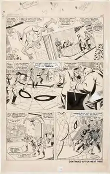 Esposito gradually began freelancing for Marvel Comics, starting with his uncredited inking of industry giant Jack Kirby's cover of Fantastic Four Annual #3 (1965).[20] For his inking of Bob Powell in the "Human Torch and the Thing" feature in Strange Tales #132, and his inking of Don Heck's "Iron Man" in Tales of Suspense #65 (both May 1965), he took the pen name Mickey Demeo (occasionally given as Mickey Dee or Michael Dee) to conceal his Marvel work from his primary employer, DC.[21][22] He also occasionally worked under the pseudonym Joe Gaudioso for the same reason.[22][23] The pseudonym Mickey Demeo, he explained, "was a name I had in the 1950s when I was doing horror [comics] stories" — considered disreputable at the time — "and I didn't want certain guys in the business to know who I was us. Mickey Demo was a relative's name up in Boston."[12]