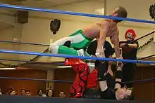 Quackenbush performing the Chikara Special on the Great Sasuke