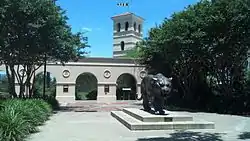 In 2005, a new $3 million habitat was created for Mike by Torre Design Consortium, LTD. The habitat (situated between Tiger Stadium and the Pete Maravich Assembly Center) features state-of-the-art technologies and includes among its amenities lush plantings, a waterfall, a flowing stream that empties into a wading pond, and rocky plateaus.[5] The habitat has, as a backdrop, an Italianate tower – a campanile – that creates a visual link to the Italianate architectural vernacular of LSU's campus. The new habitat ranks among the largest and finest tiger preserves in the United States and expanded Mike's home to 15,000 square feet (1,400 m2).[6][7] It also features research, conservation, and husbandry programs, as well as educational, interpretive, and recreational activities. Mike attracts more than 100,000 visitors each year to the habitat and can be viewed via the live Tigercam at MiketheTiger.com.[4][3]