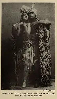 Mikhail Mordkin (Russian: Михаил Михайлович Мордкин; December 9, 1880, Moscow, Russian Empire – July 15, 1944, New York)[1] graduated from the Bolshoi Ballet School in 1899, and in the same year was appointed ballet master.[2]