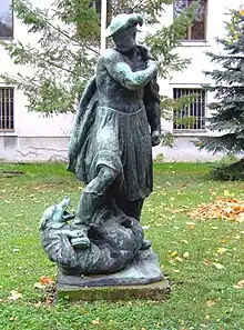Toldi was long regarded as fictional, with scant historical evidence of his life. However, it has been shown from charters that Miklós Toldi and György Toldi were real persons under kings Charles Robert and Louis the Great.[1] He is mentioned in 1354 as the alispán and várnagy of Pozsony County, in 1383 and 1385 as the főispán (English: count) of Szabolcs County. He took part in the campaigns of Louis the Great in Italy as a mercenary leader. In 1359, on request of the king, he brought two lion cubs from Firenze. He had to flee his home because he killed a soldier of his brother, György.