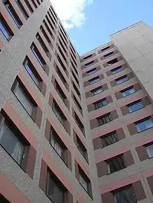 Mikontalo was built during the period 19781980.[1] Representing brutalism, it consists of 4 blocks with 12 floors where 767[2] dwellings are situated. Mikontalo offers for its inhabitants saunas (two per building), a free gym, public lounge with a TV-set, Nintendo Wii, Soundsystem, board games, coffee machine and microwave; laundry room (5 washing and 2 drying machines), cable TV, and connection to the Internet.[1]