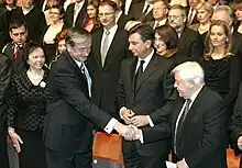 Kučan at the 2010 state commemoration of the Reformation day with Danilo Türk (left) and Borut Pahor (center)