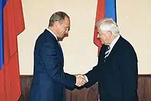 Kučan greeting Russian President Vladimir Putin, 22 September 2002
