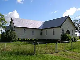Blantyre Congregational Church at "One Eye" was completed about 1877, later being called the Waterview Congregational Church, before becoming known as Milbong Congregational Church.[16][17] It was at 5 Milbong Road (27°53′06″S 152°43′39″E / 27.8849°S 152.7274°E).[13] The church building is still extant, but is now being used as a house.[18][19]