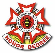 The Military Order of the Cootie of the United States (MOC, or simply Military Order of the Cootie) is a national honor degree membership association separately constituted as a subordinate and as an auxiliary order chartered by the Veterans of Foreign Wars of the United States (VFW).[1] The organization's services include supporting the VFW National Home for Children and veterans hospitals.[2] Founded in 1920, it became a subsidiary of the VFW in 1923.[3][4][5]