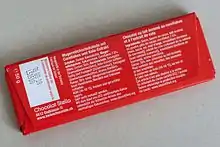 Military chocolate (German: Militärschokolade; French: chocolat militaire; Italian: cioccolato militare; Romansh: tschigulatta da militar) is a food component of the Swiss Armed Forces.[1] Swiss chocolate in general is a very popular food.