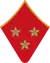 - Sleeve: One large star in gold embroidery, red piping, below a red coloured chevron in gold embroidery, surrounded by two gold laurel-twigs with red piping.
