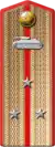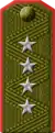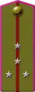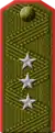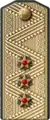 | Translation[7] | Marshal of the Soviet Union | General of the army | Colonel general | Lieutenant general | Major general | Colonel | Lieutenant colonel | Major | Captain | Senior lieutenant | Lieutenant | Junior lieutenant | Officer cadet | ||||||||||||||||||||||||