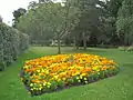 The park straddles the A1 with the main park to the east linked by an underpass to a smaller mainly grassed area to the west. It has formal flowerbeds, large areas of mown grassland, many impressive mature trees, and a Community Forest Nature Reserve, planted in 1993-94. Recreational facilities include a cricket pitch, football pitches, three tennis courts, a basketball court, two bowling greens, crazy golf, children's playgrounds, a cafe, car parks and toilets. It is supported by a full-time keeper and an active Friends of Mill Hill Park.[2][3][4]