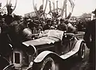 The first race started on 26 March 1927 with seventy-seven starters[4]—all Italian—of which fifty-one reached the finishing post at Brescia by the end of the race.[4] The first Mille Miglia covered 1,618 km, corresponding to just over 1,005 modern miles.[4] Entry was strictly restricted to unmodified production cars, and the entrance fee was set at a nominal 1 lira.[4] The winner, Giuseppe Morandi,[4] completed the course in just under 21 hours 5 minutes, averaging nearly 78 km/h (48 mph) in his 2-litre OM;[4] Brescia based OM swept the top three places.