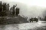 The original route from 1927 to 1930 was run anti-clockwise and headed down to Rome via Piadena, Parma, Modena, Bologna, Florence, Siena and Viterbo, then it headed north up a mountainous route through Perugia and Gubbio, then would join the Adriatic sea route at Porto Recanti, then through Pesaro, Rimini, Forli, Bologna, Ferrara, Padova and Treviso. This variant used to use a route that went into the Dolomite town of Feltre then headed south towards Vicenza, Verona and then finally towards Brescia.[9] The first part of the circuit was changed in 1931 where it bypassed the Piadena route and went directly south towards Cremona, and then went east and rejoined the existing route at Parma; this was used until 1933. The next route, used from 1934 to 1936 saw Feltre and the Dolomites section bypassed and a route that ran near Venice was added, but the rest of the route was the same.[10] From 1937 to 1938, the route was substantially modified. Although the top half remained more or less the same the bottom half was rerouted at Florence to run west towards Lucca and Pisa, and then ran along the Tyrrehennian West Coast down through Livorno, Grosseto and Vetralla before reaching Rome. The circuit then went up and cut through the mountainous range, bypassing Perugia right up to Pesaro, and joining the existing route. This was the last of the pre-WWII Mille Miglia circuits that ran through Bologna twice.[11] The 1940 event was called the "Grand Prix of Brescia" and was run on a very fast 100 km (62 mi) course in northern Italy, that went from Brescia, went west at the village of Le Grazie and then went north from Cremona back to Brescia.
