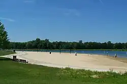 The park offers a unique fishing experience in an urban community. With a very short commute from downtown Grand Rapids, fishermen are able to enjoy a plethora of fishing locations and many off-season parking lots, which are free of charge. The lakes are home to a variety of panfish, both large and smallmouth bass, and even the occasional northern pike. The park offers boat rentals in the summer that can help fishermen reach their desired trophy fish.[7] With very few visitors in the early spring, the area is a delicacy for anglers during the most ideal season to seek out largemouth bass.[8]