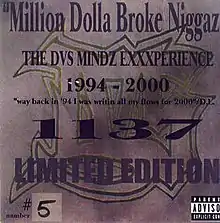 Million Dolla Broke Niggaz: The DVS Mindz Exxxperience 1994-2000 was the first official full-length release from the Topeka, Kansas rap group DVS Mindz. “"We got million dollar dreams, but we ain't got no money,” Kutaculus, the group’s DJ, explained of the title.[1] The CD has been long out of print, and physical copies are hard to find online, but the entire album is available for streaming.
