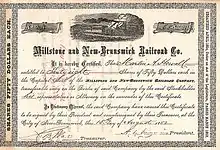 Share of the Millstone & New-Brunswick Railroad Co. from February 20, 1883