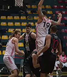![]() Drašković (#15 in black), in action with the Flyers Wels. | |