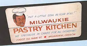 Milwaukie Pastry Kitchen was a full-line bakery that offered specialty breads, assorted pastries, and creative birthday and wedding cakes. One of the bakery's featured specialties was "Cake On Wheels" in which Hurtis Hadley delivered a specialty cake dressed in a top hat and tails. He also sang a customized song for the person and/or occasion. Hadley baked and Dorothy Hadley, a former licensed cosmetologist, managed the front of the store and coordinated the catering service.[6] The bakery's slogan was "Put a Little Soul in Your Roll!"[5]