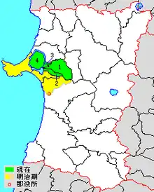 - Yellow: former extent in early Meiji period