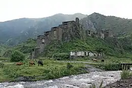 ![]() A mountain village in the Khevsureti region of Georgia, the setting of Mindia | |