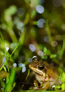 This species is about 22 mm in length and is nocturnal. It is seen in loose groups; key identifying features include pointed snout, presence of rictal gland, supratympanic fold from back of eye to shoulder, mid dorsum reddish to reddish brown in colour and minimal webbing in feet.[3]