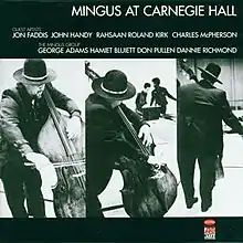 Mingus at Carnegie Hall is a live album by the jazz bassist and composer Charles Mingus, recorded at Carnegie Hall in January 1974 by Mingus with Jon Faddis, Charles McPherson, John Handy, George Adams, Rahsaan Roland Kirk, Hamiet Bluiett, Don Pullen, and Dannie Richmond.[1] The original release did not include the first part of the concert, featuring Mingus’s working sextet without Handy, Kirk, and McPherson. An expanded “Deluxe Edition” including the entire concert, was issued in 2021.[2]