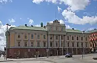Ministry for Naval Affairs' office and the Military Office was located during the years 1840-1850 at Stenbockska palatset at Birger Jarls torg 4. In 1850 the ministry moved to Birger Jarls torg 11, where it remained until 1909. The ministry then moved to Arvfurstens palats, where its offices were located until the ministry was merge into the Ministry of Defence in 1920.[2]