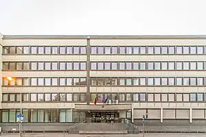 The Ministry of Finance of the Republic of Lithuania (Lithuanian: Lietuvos Respublikos finansų ministerija) is a government department of the Republic of Lithuania. Its operations are authorized by the Constitution of the Republic of Lithuania, decrees issued by the President and Prime Minister, and laws passed by the Seimas (Parliament). Its mission is to formulate and implement an effective policy of public finance in order to ensure the country's macroeconomic stability and economic development.[4] The current head of the Ministry is Gintarė Skaistė.
