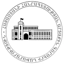 The Ministry of Foreign Affairs of Armenia (MFA) (Armenian: Հայաստանի արտաքին գործերի նախարարություն, romanized: Hayastani artak’in gortseri nakhararut’yun) is a state body of executive power, which elaborates and implements the foreign policy of the Government of Armenia and organizes and manages diplomatic services.[1] The MFA acts accordingly to the Constitution and legislation of Armenia.[1] The Ministry of Foreign Affairs coordinates the activities of the executive power bodies of the Republic in the international arena.[1] Since 2021, Ararat Mirzoyan has been the Minister of Foreign Affairs of Armenia.