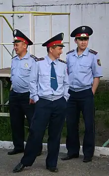 The Ministry of Internal Affairs of the Republic of Kazakhstan (MIA RK, Kazakh: Қазақстан Республикасы Ішкі істер министрлігі, romanized: Qazaqstan Respublikasy Işkı ıster ministrlıgı, [ɘʂkʰɘ ɘstʰʲer ministərlɘɡɘ], ҚР ІІМ; Russian: Министерство внутренних дел Республики Казахстан, МВД РК) is the Kazakh government ministry which oversees the police and the National Guard (formerly the Internal Troops) of Kazakhstan.[2] The Ministry is headed by the Minister of Internal Affairs of the Republic of Kazakhstan, appointed by the decree of the President of Kazakhstan. The Minister of Internal Affairs has 5 deputies, including the First Deputy Minister.[3][4]