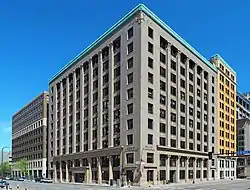 ![]() The three-building Minneapolis Grain Exchange viewed from the west | |