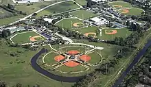 The Minor League Baseball Umpire Training Academy is located at the Historic Dodgertown sports facility in Vero Beach, Florida. The campus includes classrooms, a Triple-A level approved stadium, four full-size baseball fields, eight indoor batting and pitching tunnels, 32 mounds/home plates for plate instruction, as well as a 60-yard agility and warm-up area and a mini-field used for base work.[1] The campus also contains a weight room, locker rooms, four lighted tennis courts, a competition-size swimming pool, lighted tennis/basketball courts and a sand volleyball court. Historic Dodgertown-Vero Beach includes on-site housing and dining options for Umpire Training Academy students.
