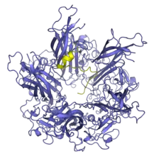 - 1 2 3 4 5 Chen XS, Stehle T, Harrison SC (June 1998). "Interaction of polyomavirus internal protein VP2 with the major capsid protein VP1 and implications for participation of VP2 in viral entry". The EMBO Journal. 17 (12): 3233–40. doi:10.1093/emboj/17.12.3233. PMC 1170661. PMID 9628860.