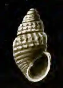 The white, small shell grows to a length of 1.8 mm. It is subovate, minutely umbilicated, with the summits of the whorls decidedly tabulated. The two helicoid whorls of the protoconch are moderately large, and about one-third immersed in the later whorls. The five whorls of the teleoconch are moderately rounded, decidedly tabulated at the summit,. They are ornamented by rounded, axial ribs which quickly diminish in strength as they pass from the summit of the whorls to the periphery. Sixteen of these ribs occur upon the second, and twenty upon the penultimate whorl. The ribs are thickened at the anterior termination of the shoulder and render it decidedly crenulated. The intercostal spaces are a little wider than the ribs. In addition to the axial ribs the whorls are marked by strong spiral cords, two of which can be seen between the sutures on the first and second and four and one-half upon the penultimate whorl. The junction of the posterior one of these two cords and the axial ribs form a series of tubercles. The anterior cord is only slightly tuberculated, the ribs extending only feebly to it. The periphery and the base of the body whorl are well rounded, the latter decidedly attenuated and marked by seven subequal and subequally spaced spiral keels. The suboval aperture is large. The posterior angle is very obtuse. The outer lip is thick. The columella is re-enforced by the attenuated base, curved. It is provided with a conspicuous oblique fold near its insertion. The parietal wall is covered by a moderately thick callus. [2]