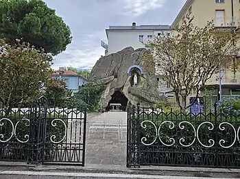 In 1962, two years before his death, Masi opened a lifesize reproduction of the Lourdes grotto in Miramare, which remains open today.[12][23] Miramare remains the motherhouse of the Sisters of the Immaculate, who regard Masi as their founder and also run a seaside retreat home, kindergarten, and nursing clinic in the neighbourhood.[13][24][25] Viale Don Domenico Masi, which houses the motherhouse and Lourdes grotto, is named after Masi; it is the next street north of Viale Ivo Oliveti, to which it runs parallel.[25] In 2012, there were 200 Sisters of the Immaculate across twenty-two houses in Italy, Venezuela, Paraguay, the Philippines and Indonesia.[13]