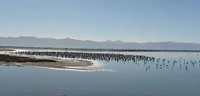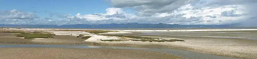 Miranda is on the western shore of the Firth of Thames where the Hauraki Plains drains into the Hauraki Gulf. The wetlands of the Firth of Thames consist of extensive intertidal mudflats (about 8500 hectares), which are the feeding grounds for flocks of migratory wading birds. Along the Miranda coast, a chenier plain with large shell banks formed over the past 4500 years,[1] and provides roosting areas for the waders at high tide. It is one of the most significant Holocene coastal strand plains in the world.[2]