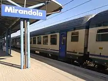 Mirandola railway station is a railway stop along the Verona-Bologna railway serving the city of Mirandola, in the province of Modena, in Emilia-Romagna, Italy. The station serves also the municipalities of Medolla, Cavezzo, San Possidonio, and Finale Emilia. Located in the village of Cividale, about 3 km from the town centre of Mirandola, th station is connected by a SETA shuttle bus.[2]
