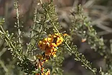 Mirbelia microphylla is a species of flowering plant in the family Fabaceae and is endemic to Western Australia. It is an erect shrub with many branches that typically grows to a height of 15–100 cm (5.9–39.4 in) and has yellow and red flowers from August to October.[2] It was first formally described in 1853 by Nikolai Turczaninow who gave it the name ''Dichosema microphyllum in the Bulletin de la Société Impériale des Naturalistes de Moscou.[3][4] In 1864, George Bentham changed the name to Mirbelia microphylla in Flora Australiensis.[5] The specific epithet (microphylla) means "small-leaved".[6]
