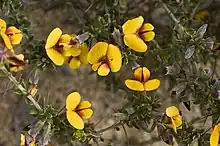 Mirbelia multicaulis is a species of flowering plant in the family Fabaceae and is endemic to the south-west of Western Australia. It is an erect, rigid shrub that typically grows to a height of 15–50 cm (5.9–19.7 in) and has erect stems with few branches. It has scattered, egg-shaped to oblong leaves 4–6 mm (0.16–0.24 in) long and spines that are longer than the leaves. The flowers are arranged in clusters in leaf axils or at the base of the spines and are yellow or orange and reddish-brown and appear in September and October.[2][3] It was first formally described in 1853 by Nikolai Turczaninow who gave it the name Dichosema multicaule in the Bulletin de la Société Impériale des Naturalistes de Moscou.[4][5] In 1864, George Bentham changed the name to Mirbelia multicaulis in Flora Australiensis.[6] The specific epithet (multicaulis) means "many stems".[7]