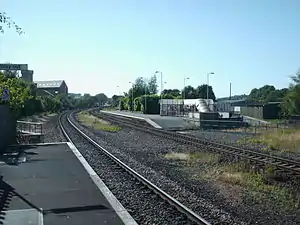 Eastbound from Mirfield, an hourly service to Leeds.[9] Services to Wakefield and Castleford no longer run - the regular service that once ran was suspended during the COVID-19 pandemic and has never been properly reinstated)[10]