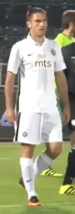 On 29 July 2015, Vulićević scored his first competitive goal for Partizan in the first leg of the UEFA Champions League third qualifying round against Steaua București; the game ended in a 1–1 draw.[9] He played the vast majority of his team's games in the first half of the 2015–16 season, but served mainly as a backup right-back to Ivan Bandalovski in the second under newly appointed manager Ivan Tomić.[10]