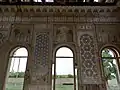 The palace was rebuilt mainly in wood and brick style. It is structurally divided into two. The first part is a 6x20 m building with a height of 11 meters, it consists of a two-room hall and a 15-bed hotel. At the top of the corridor was a bolokhana. The interior of both rooms is decorated with carvings and paintings. A large arched mihrab and arches were built on both sides of the hotel. The upper parts of the northern and southern walls of the room have four arches. The eight windows of the building are in the European style, and their upper part is made in the form of a bell. The building is entered from the north side through two doors. The doors are decorated with carvings.[7]