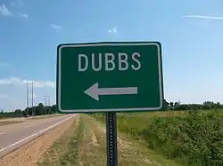 The entire route was in Tunica County.[1] MS 308 started at an intersection with US 61 near Maud, and it traveled eastward along Dubbs Road. The route traveled through the unincorporated community of Dubbs near its intersection with Bly Road and Bill Pegram Road.[2] At Limerick Road, MS 308 turned north and continued through farmland.[3] The route ended at an intersection with MS 4 southeast of White Oak.[1][2] The road was maintained by the Mississippi State Highway Commission (MSHC) and Tunica County, as part of the state highway system.[1]