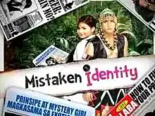Mistaken Identity is a 2011 Philippine television drama romance series broadcast by GMA Network. Starring Lovi Poe and Rocco Nacino, it premiered on July 23, 2011, on the network's Saturday morning line up. The series concluded on August 27, 2011, with a total of 6 episodes.