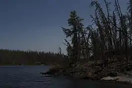 Mitatut Lake is a glacial lake above the confluence of Holt Lake and Mistik Creek, approximately 21 kilometres (13 mi) northeast of Bakers Narrows. As a segment of the Mistik Creek, it is part of the Nelson River watershed, in the Hudson Bay drainage basin in the Northern Region of Manitoba, Canada. The surrounding mixed deciduous and coniferous forest is part of the Churchill River Upland portion of the Midwestern Canadian Shield forests.[1] The region around the lake consists of rocky parallel ridges with poorly drained areas of muskeg and irregular stony shorelines due to intense glaciation.[2] The lake is situated on the well known "Mistik Creek Loop", a remote canoe route 80 kilometres (50 mi) in length which can be paddled in four days.[3][4]
