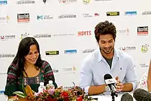![]() Mitu Bhowmick Lange with actor Shahid Kapoor at a press conference for the Indian Film Festival of Melbourne in 2012. | |