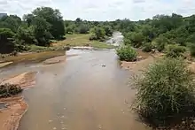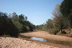 The basin of the Mogalakwena is affected by a five-year rain cycle in which the river is virtually dry for five years, followed by another five years in which there is sufficient water flow.[4] In 2016 the river had the least water in living memory, and villagers at Bokwidi had to dig in the sand to find water for their livestock.[5]