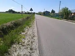 Mokrosęk is located in the Radom Plain.[5] Village covers a total area of 550 hectares (2.1 sq mi).[6] A 5.2 km long[7] Stara Błotnica - Jedlanka powiat road no. 1133W runs through the village, linking the village with the European route E77. Also a 59.8 km long Radomka Community Corporation's Bartodzieje - Uroczysko Grabina cycling trail runs through the village.[8]