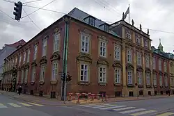 The Baroque mansion has rich sandstone decorations featuring elephants and lion heads and is also notable for its interior decorations by Erik Pauelsen.