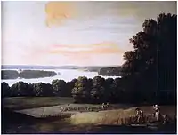 One of Erik Pauelsen's overdoors, depicting a harvest scene from the Dronninggård estate